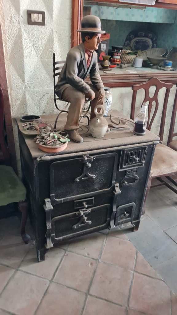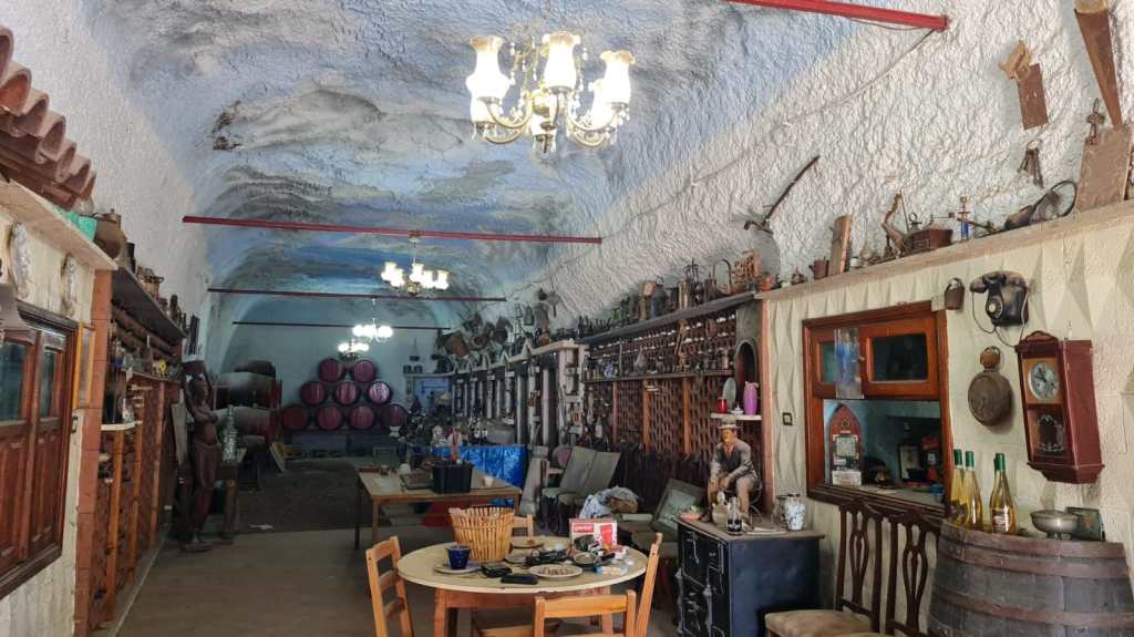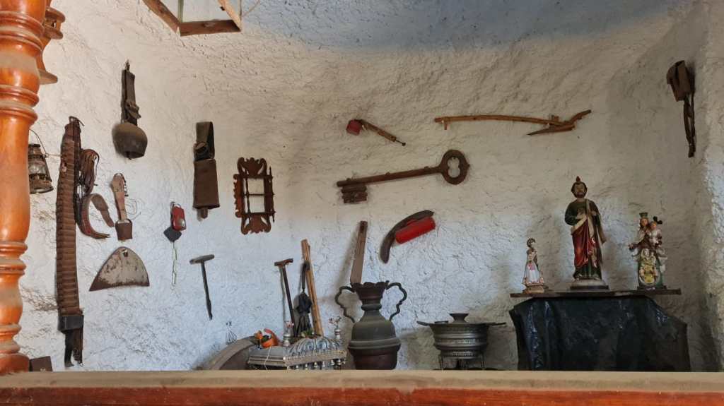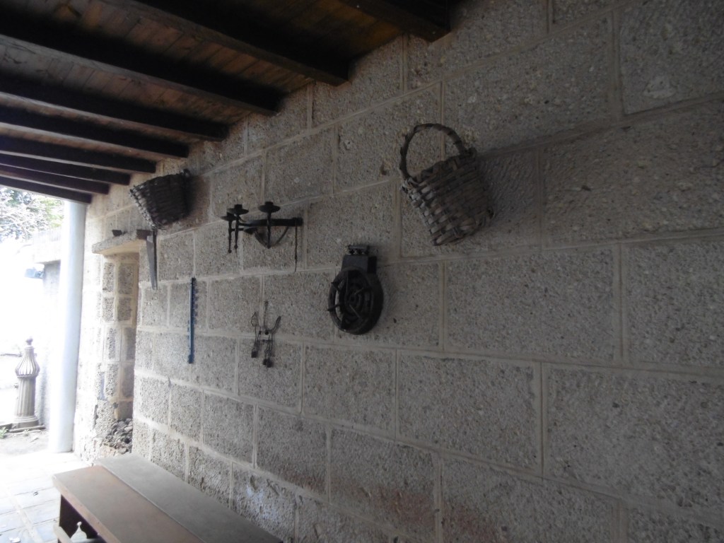 Pero este lugar también era utilizado como almacén de antigüedades. Por eso podemos encontrarnos con un bernegal hecho a mano de piedra de cantera, diversas herramientas colgadas en la pared, etc.